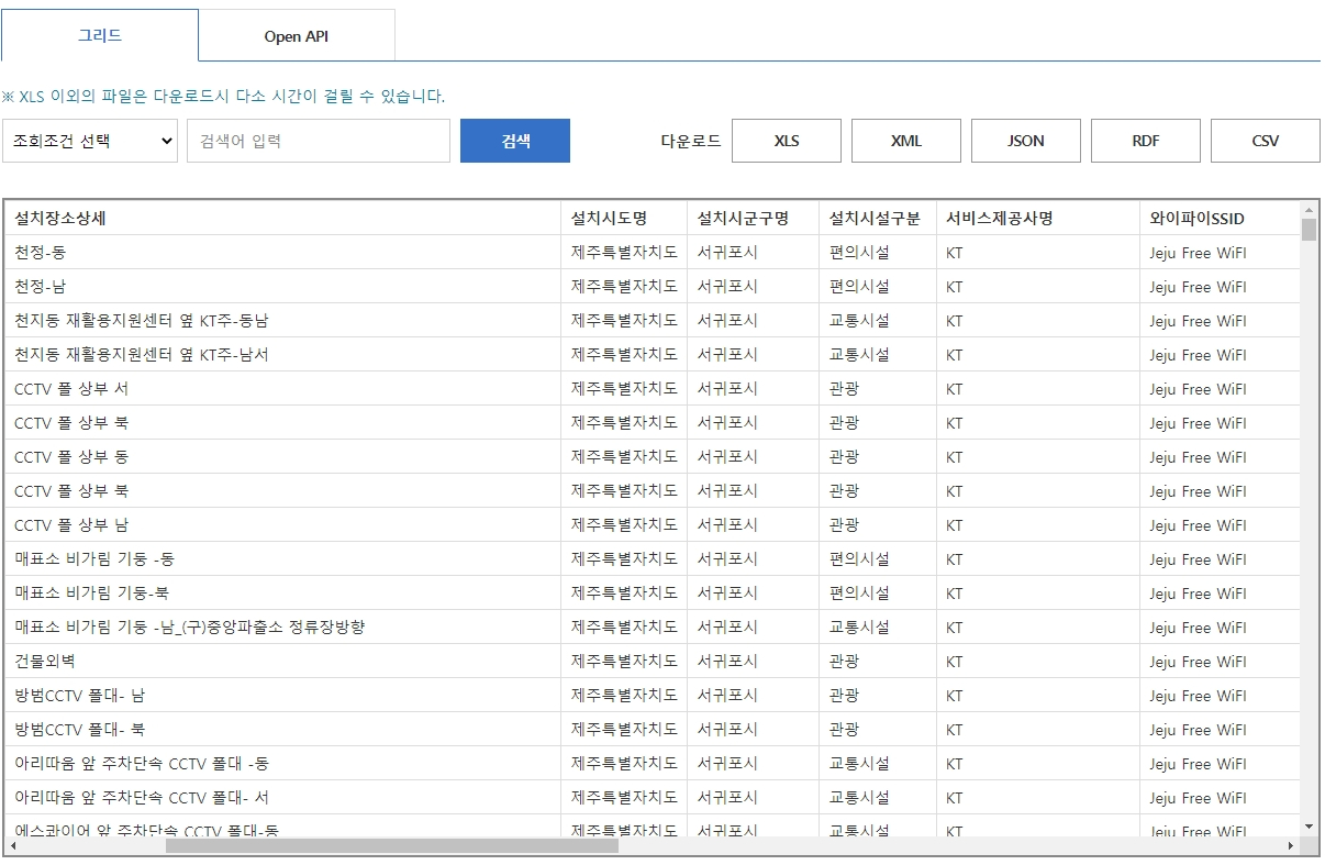 전국 무료 와이파이 표준 데이터를 소개합니다.