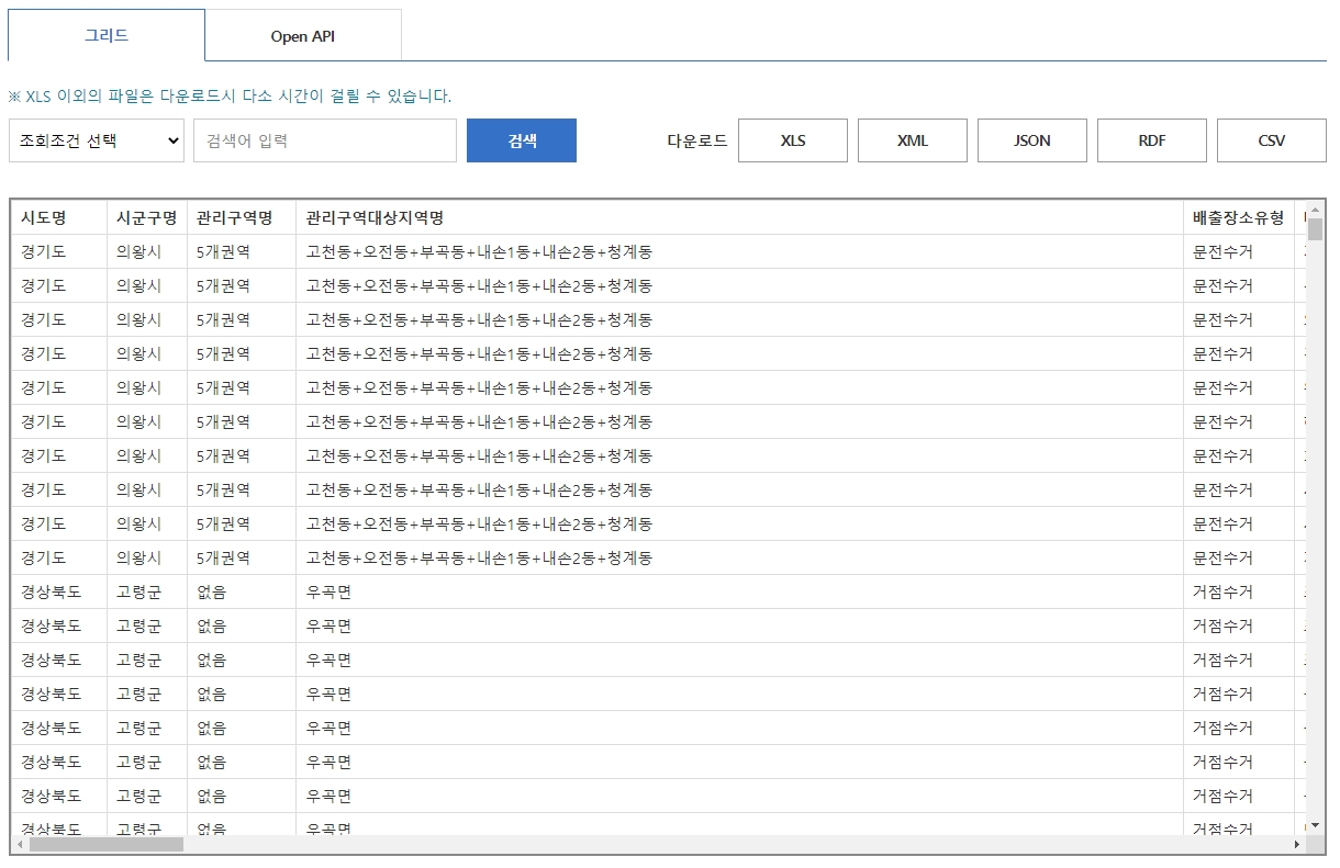 전국 생활쓰레기 배출정보 표준 데이터를 소개합니다.