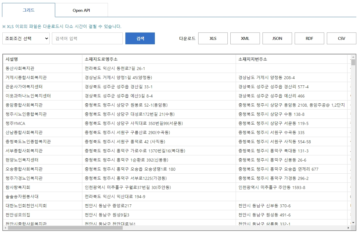 소재지 도로명주소 기준 정렬 (Ctrl + F 검색)