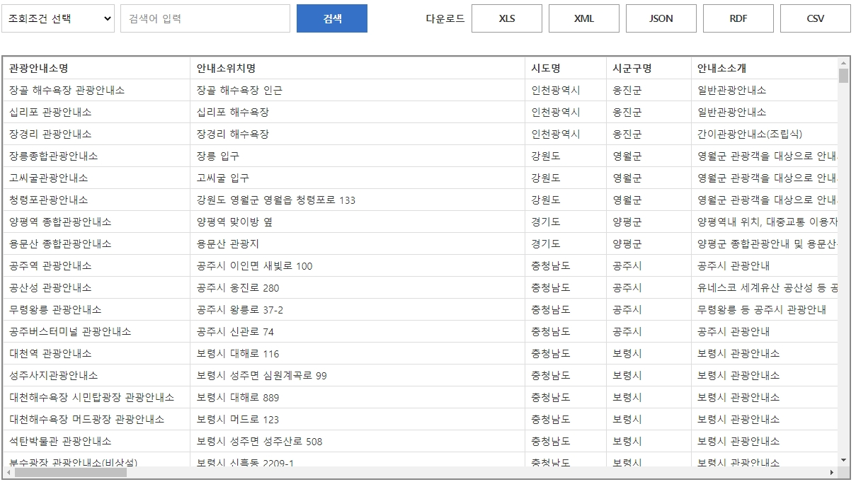 전국 관광 안내소 표준 데이터를 소개합니다.