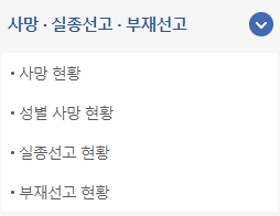 사망 · 실종선고 · 부재 선고 신고 사건에 대하여 사건 접수 후 가족관계 등록부에 기록된 사건 정보를 일단위로 집계한 잠정치입니다.