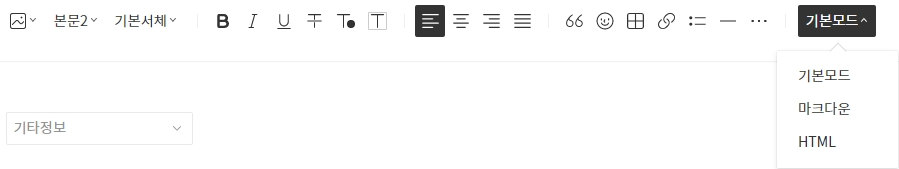 티스토리 > 글쓰기 > 기본모드를 클릭해서 HTML 모드로 바꿔줍니다.