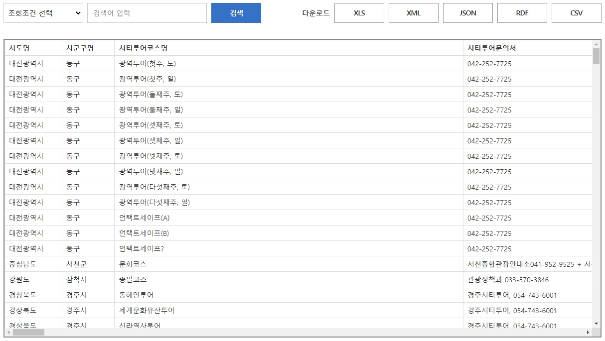이번 포스팅은 전국 시티투어 정보 표준 데이터 정보입니다.