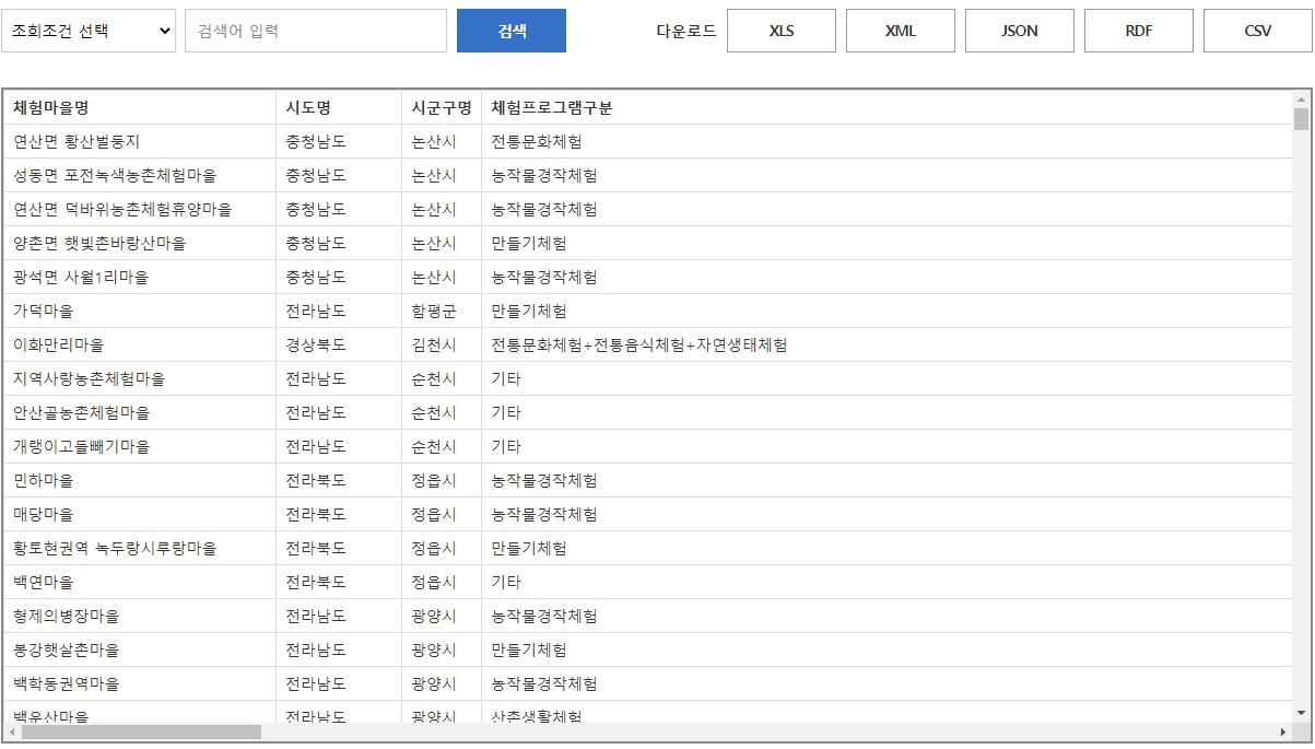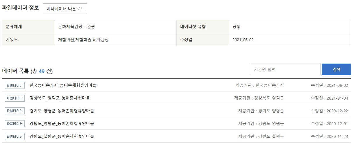 이번 포스팅은 전국 농어촌 체험 휴양 마을 표준 데이터 정보입니다.