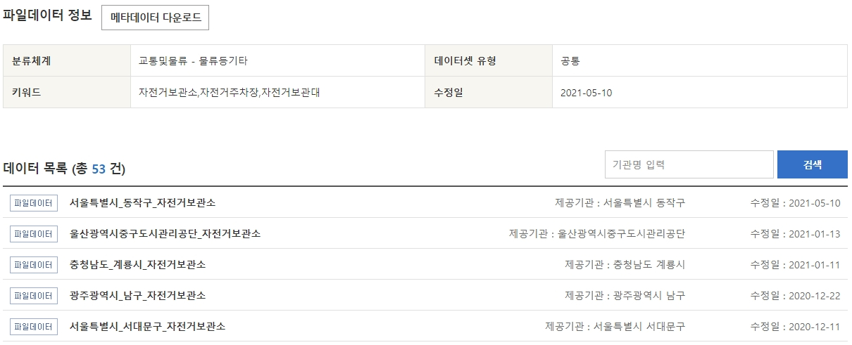 이번 포스팅은 전국 자전거 보관소 표준 데이터 정보입니다.
